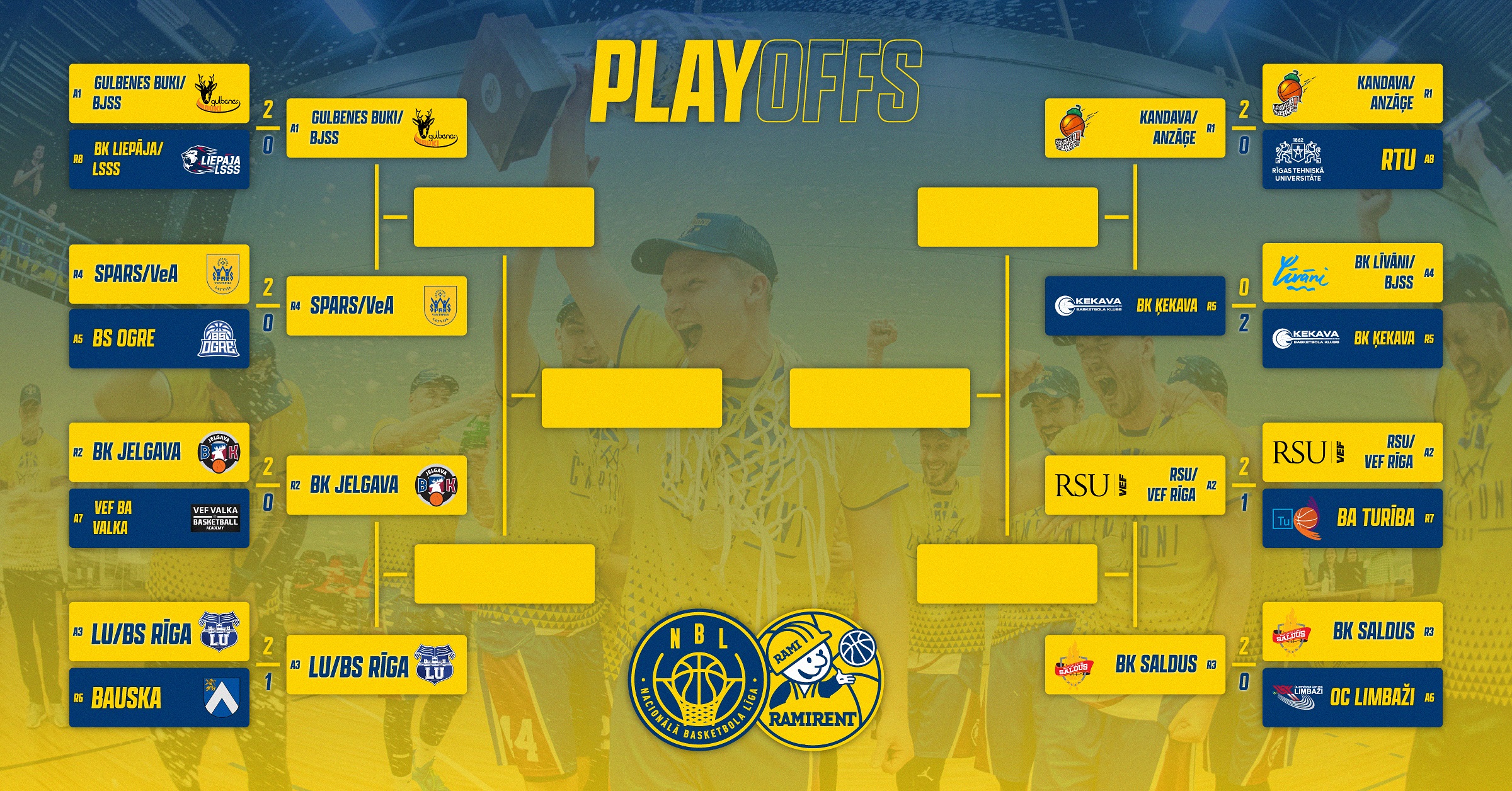 Otrā spēle 19. martā, nepieciešamības gadījumā trešā spēle – 25. martā.