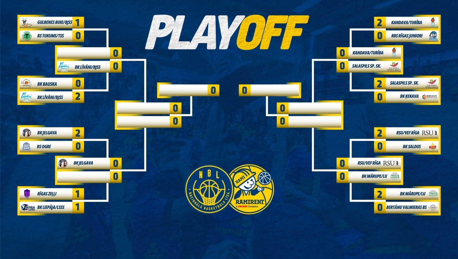 Svētdien, 23. martā, Ramirent Nacionālās līgas astotdaļfināla atbildes izšķirošajā trešajā “Rīgas Zeļļi” pārspēja BK “Liepāja”/LSSS, nodrošinot tiesības spēlēt nākamajā kārtā. Ceturtdaļfinālā spēlēs: “Gulbenes Buki”/BJSS (1.vieta Austrumos) – BK “Līvāni”/BJSS (5A), “Kandava/Turība” (1R) – “Salaspils Sporta skola/API Mobile” (4A), RSU/”VEF Rīga” (2A) – “Mārupe”/LU (3R), BK “Jelgava” (2R) – “Rīgas Zeļļi” (3A). Ceturtdaļfināla sērijas sāksies marta pēdējā nedēļā. Spēlēm var sekot LBS YouTube kontā.
